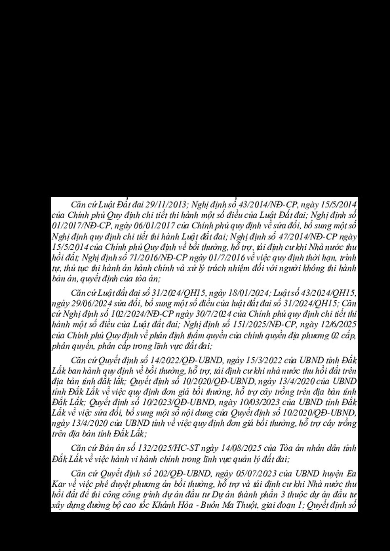 | Tiêu đề văn bản | QUYẾT ĐỊNH VVề việc phê duyệt phương án bồi thường, hỗ trợ, tái định cư khi Nhà nước thu hồi đất để thi công Dự án TP3 thuộc Dự án đầu tư xây dựng đường bộ cao tốc Khánh Hòa - Buôn Ma Thuột, giai đoạn 1 xã Ea Ô, tỉnh Đắk Lắk hộ ông Đặng Văn Chi | ||